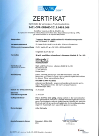 Zertifikat der Konformität der WPK für Stahltragwerke nach EN 1090-2